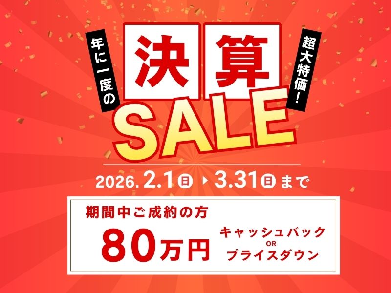 2月1日(日)〜3月31日(火)までの期間限定🎍 期間中ご成約いただいた方へ80万円キャッシュバックいたします! さらに…ホームページからの来場予約でAmazonギフト券3,000円分をプレゼント! ※3月31日までにお […]