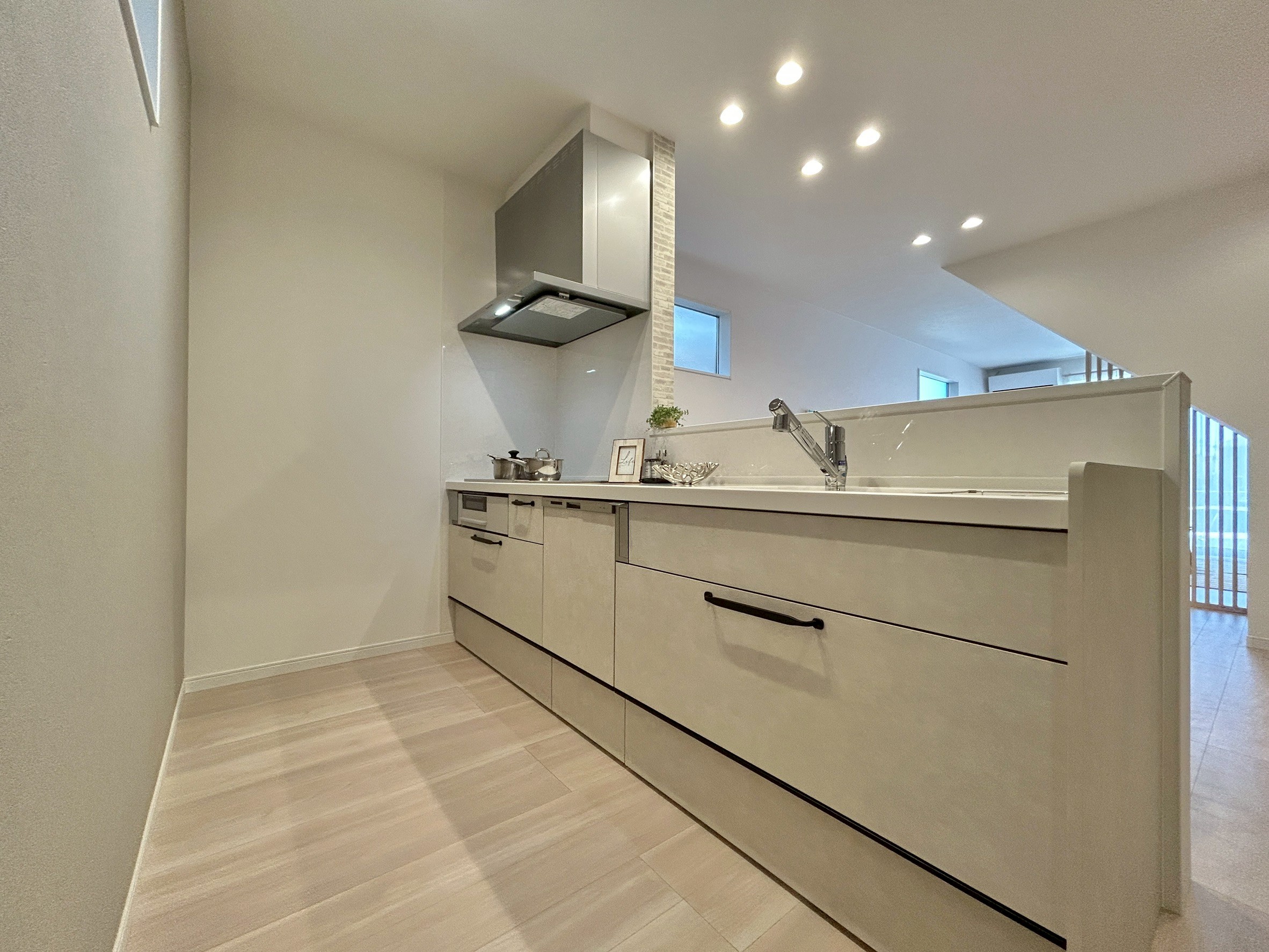 キッチンから洗面・浴室への直線動線で、毎日の家事効率がグッとアップ。パントリー付きで収納力も◎。