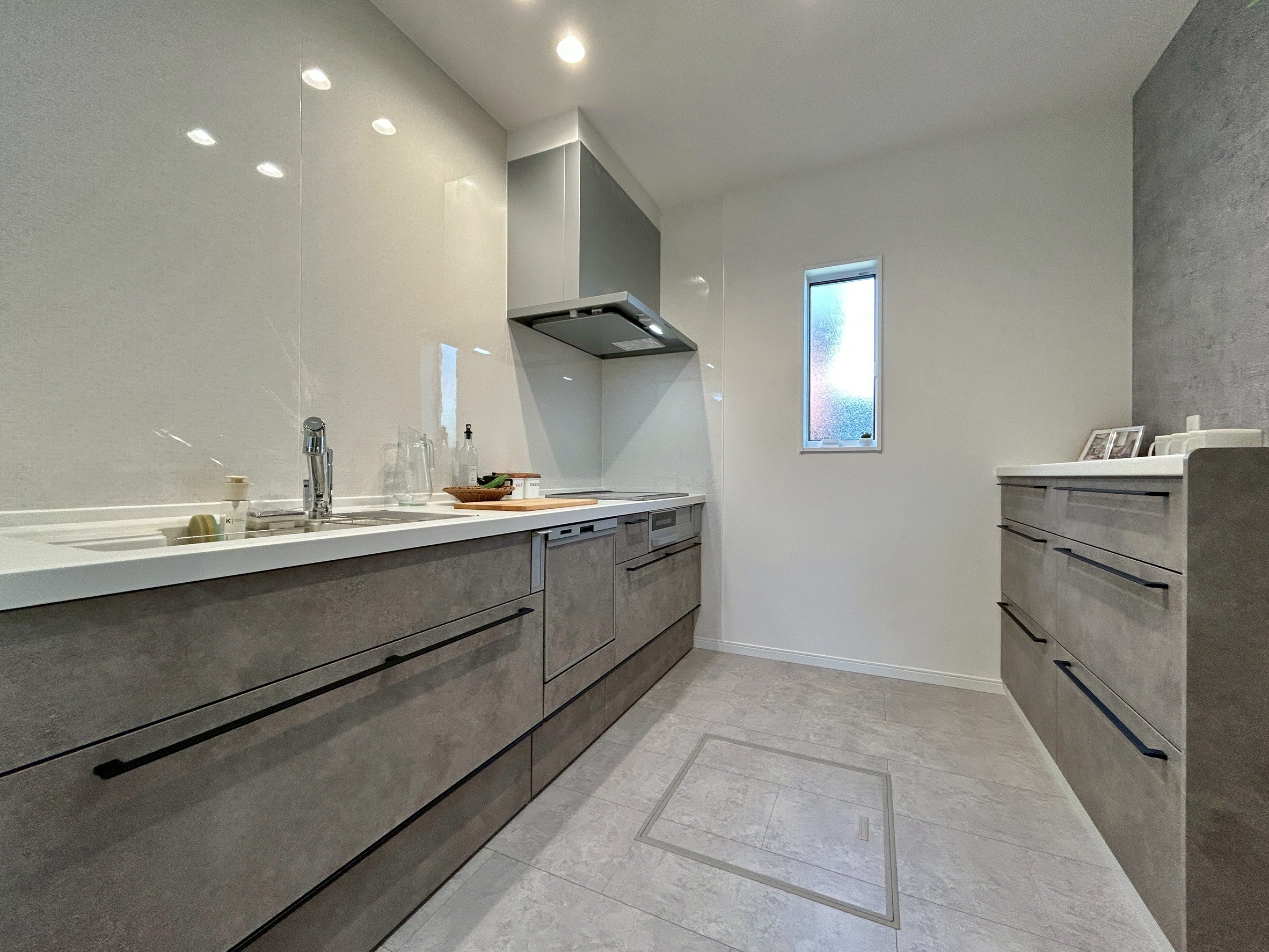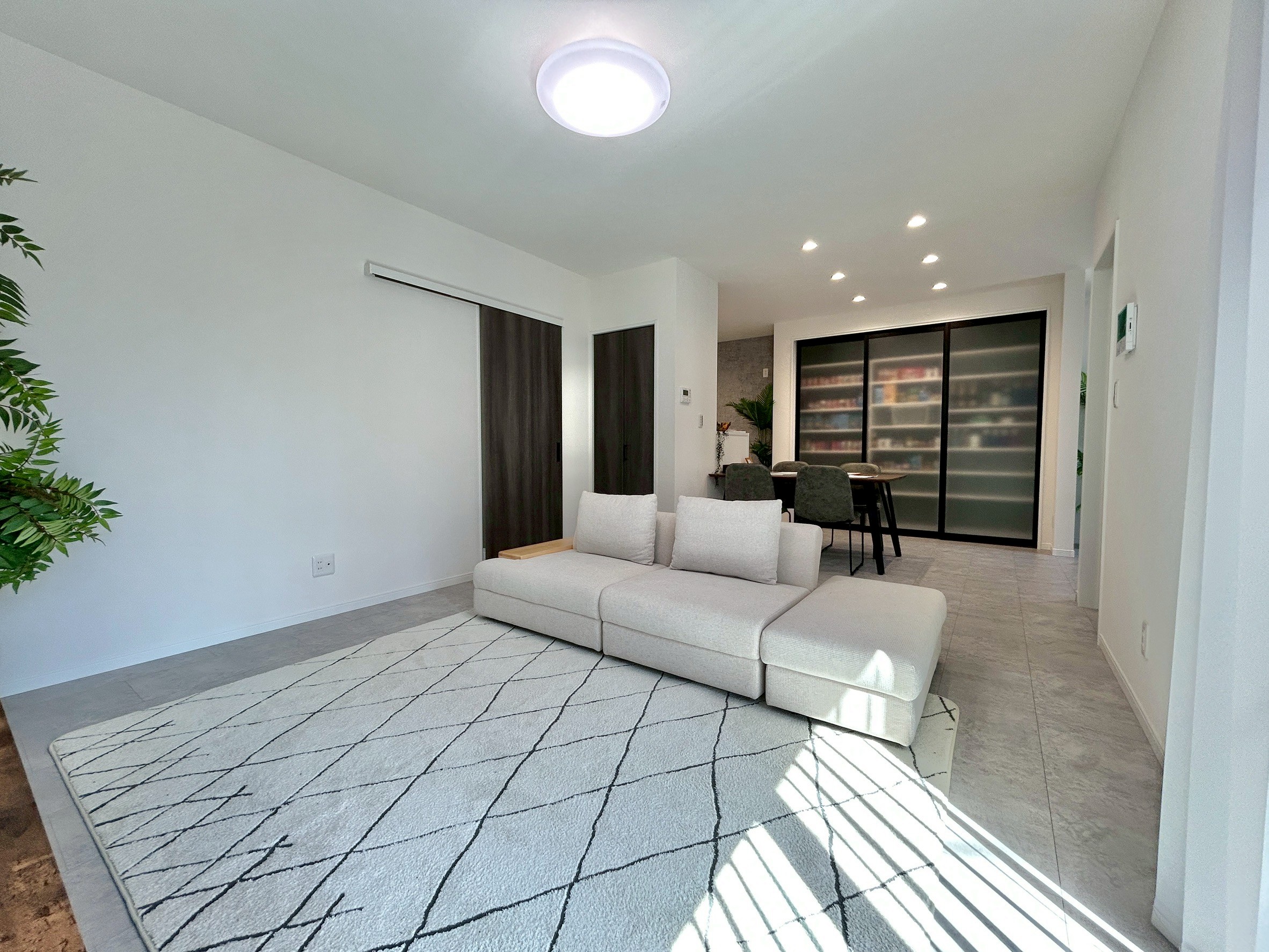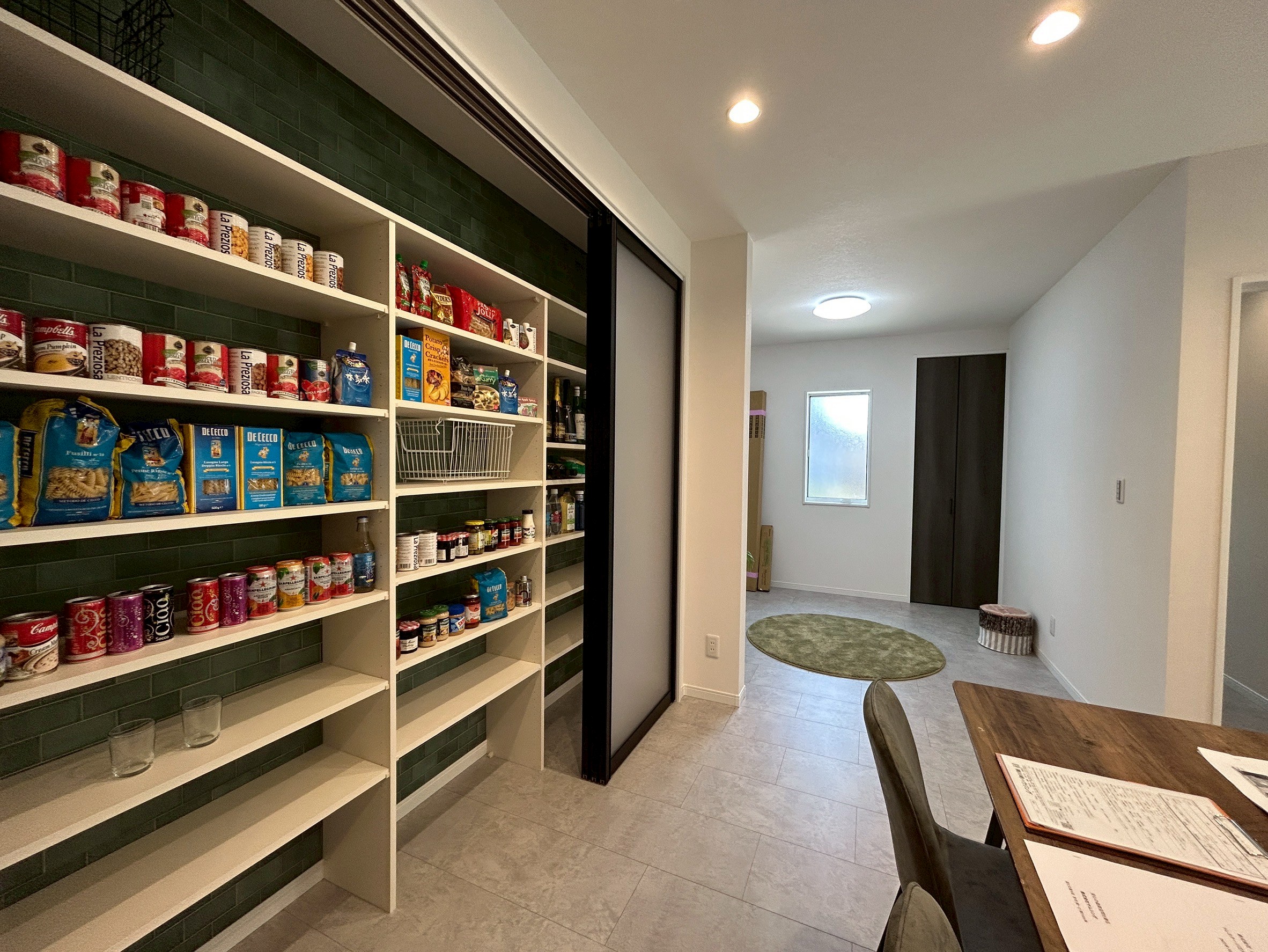 家族が自然と集まる大空間LDK。パントリーも備え、生活感を隠した収納上手な暮らしが叶います。