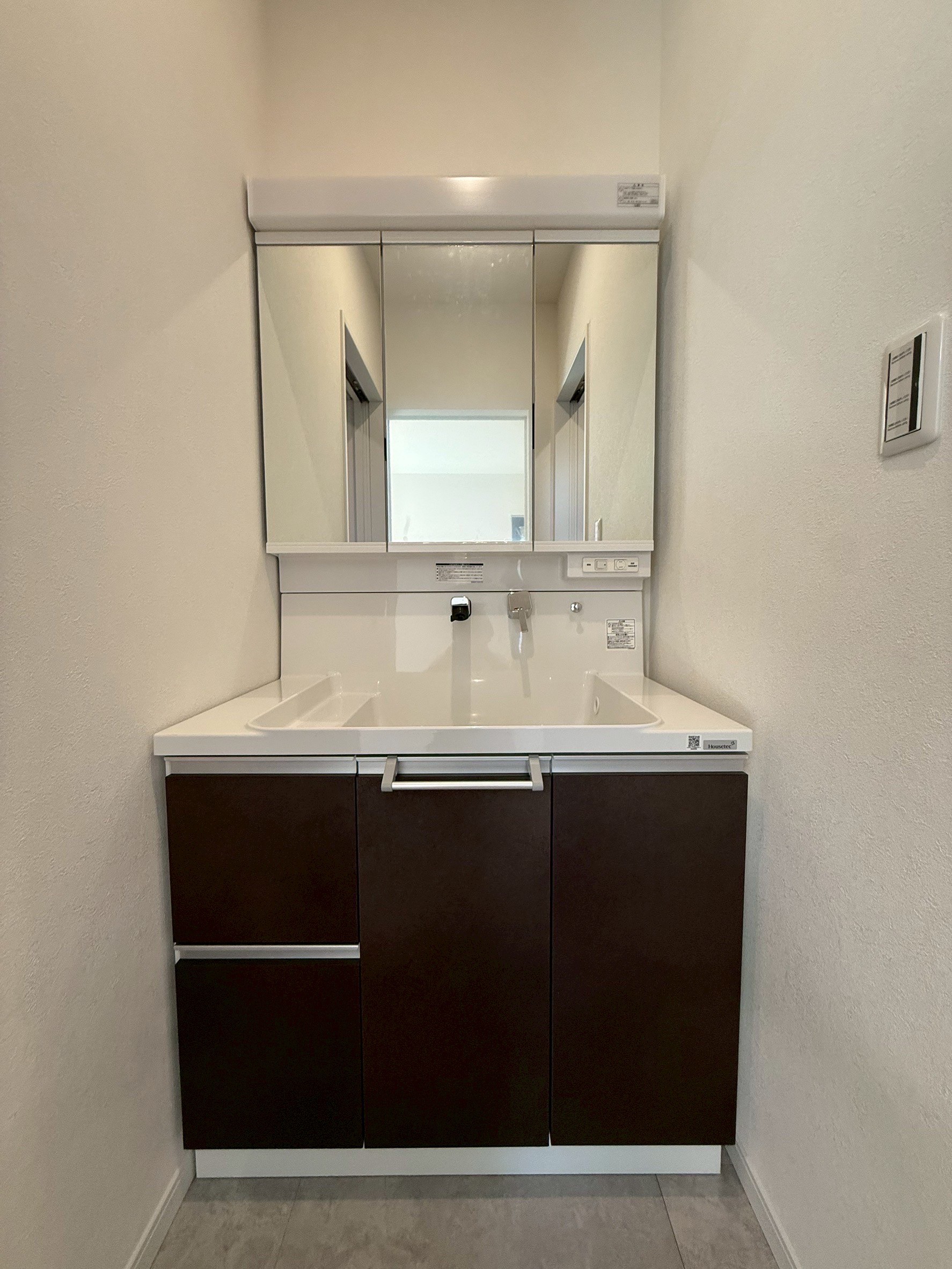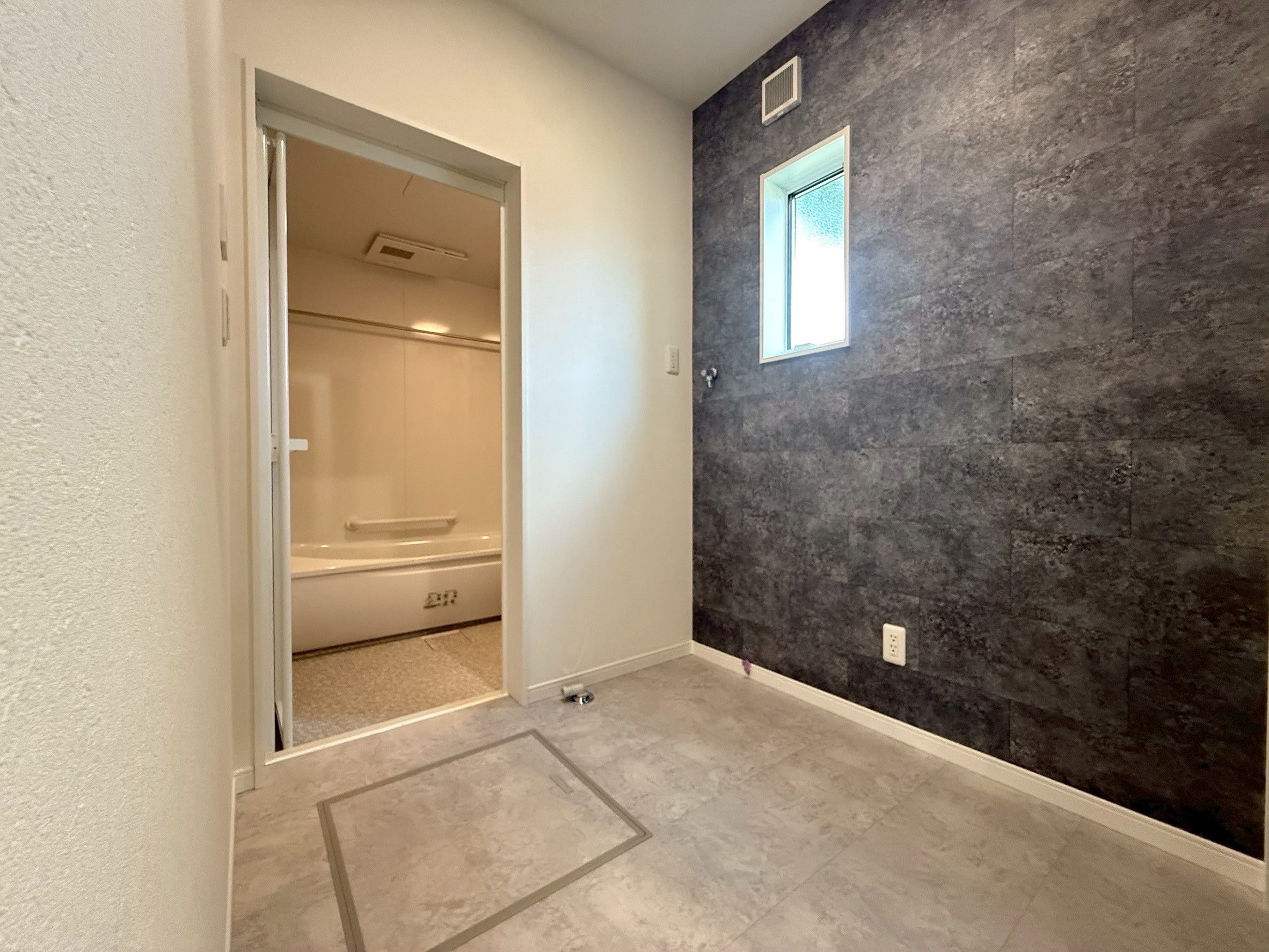 洗面・脱衣・浴室・キッチンが直線的に配置され、毎日の家事や身支度がスムーズ。