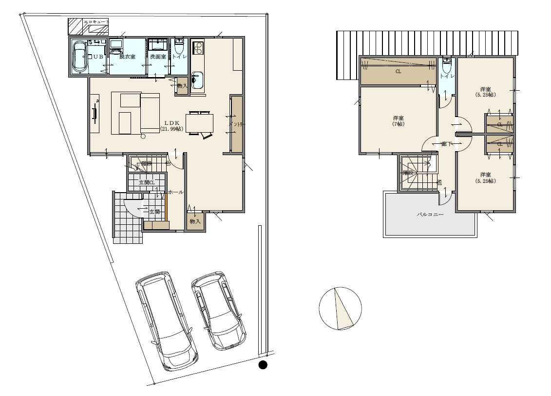 主寝室7帖に加え、5.25帖の洋室2部屋。プライバシーを大切にしながらも、家族の成長に合わせて使い分けできます。