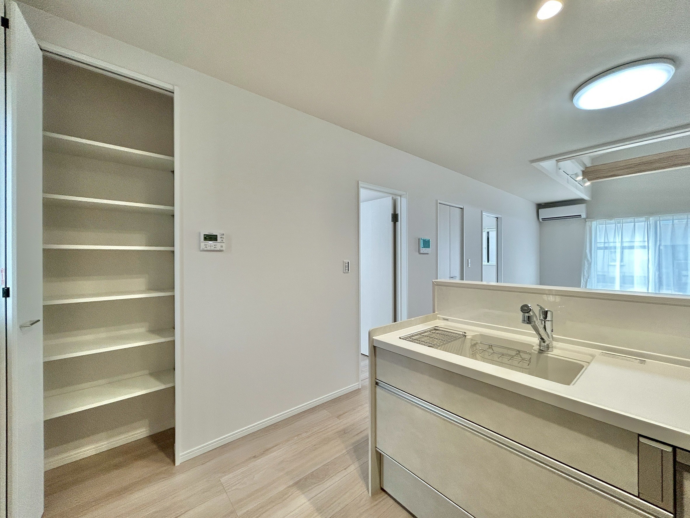 - 3部屋それぞれにクローゼットを設置。さらにキッチンにはパントリー収納もあり、生活感を出さずにスッキリと暮らせます。