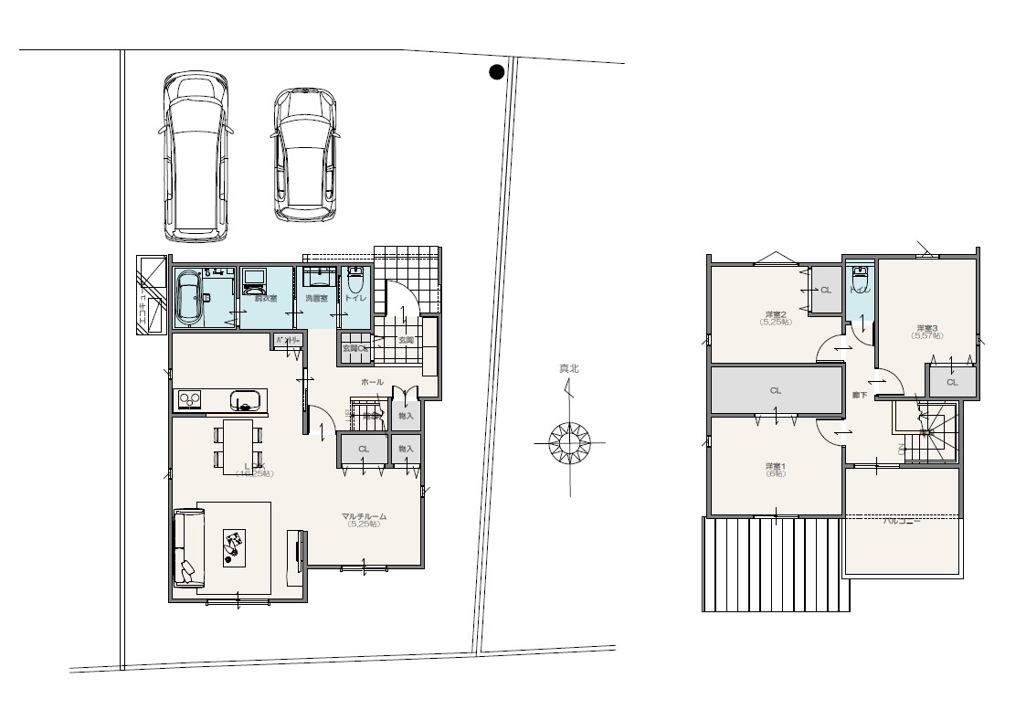 キッズスペースや書斎、将来的には寝室としても使える5.2帖のマルチルーム。家族構成の変化に合わせて柔軟に使える間取りです。