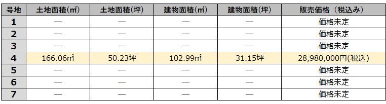 ■「トレステージ久留米工業大学前」物件概要 ●所在地/福岡県久留米市藤山町1768-7他●交通/西鉄バス「野添」停徒歩5分 ●地目/宅地 ●用途地域/第一種低層住居専用地域●建ぺい率/50% ●容積率/80% ●道路幅員/西側(公道):幅員6m ●雨水/側溝排水 ●電気/九州電力●上下水道/公営上下水道●総区画数/7区画 ●販売戸数/新築一戸建:1戸 ●土地面積/166.06㎡●建物面積/102.99㎡ ●販売価格/4号地:2898万円●完成時期/2025年11月末予定 ●取引態様/売主