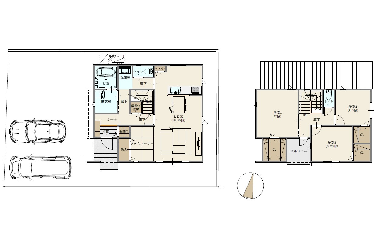 コンパクトにまとまる動線と、駐車3台の安心感を備えた平屋。