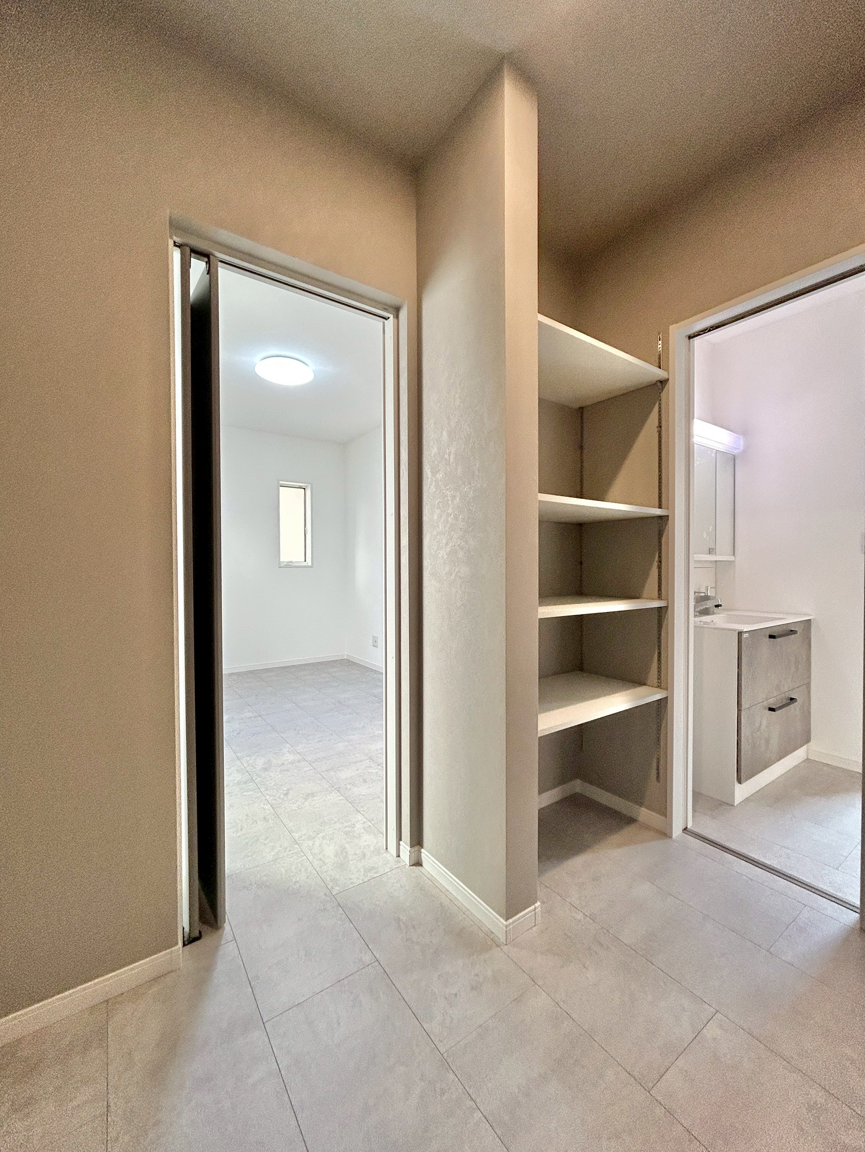 洗面・浴室・トイレが一直線にまとまり、使いやすさ抜群。さらに廊下や洋室に収納をしっかり確保。