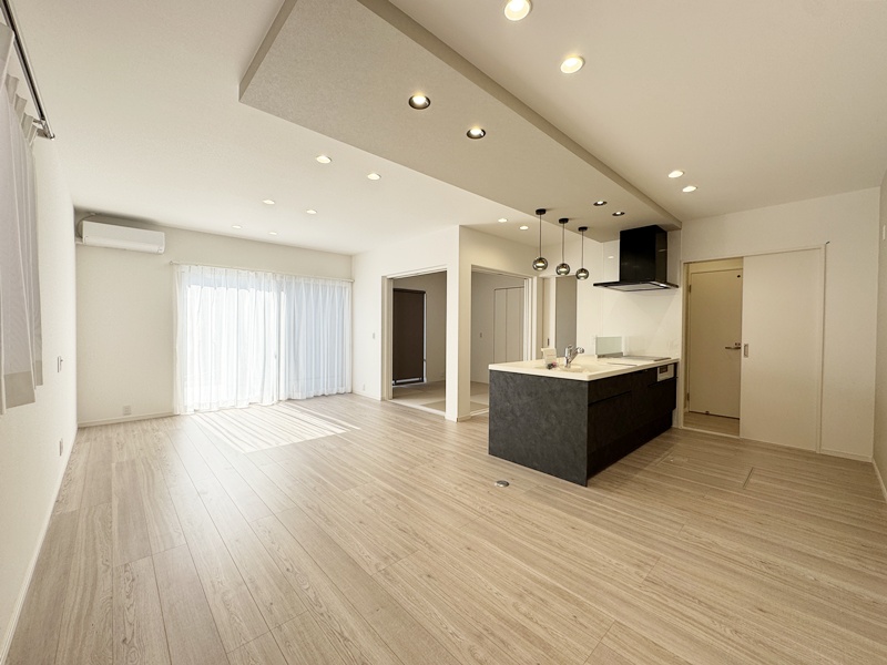 南向きのLDKは明るく、日当たり良好です。明るいキッチンで毎日のお料理を楽しめます。