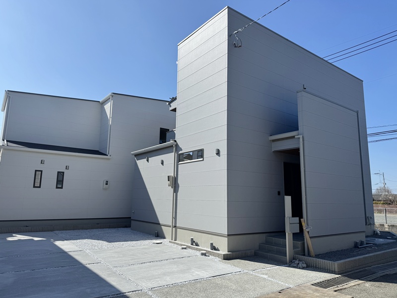 グレーのシンプルでおしゃれなな外観のモデルハウスが完成しました🌟