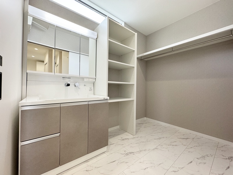 キッチンから脱衣室が近く、家事をしながら洗濯やお風呂準備もラクに。お子さまの様子を見守りながら動ける、子育て世代に嬉しい動線設計です。