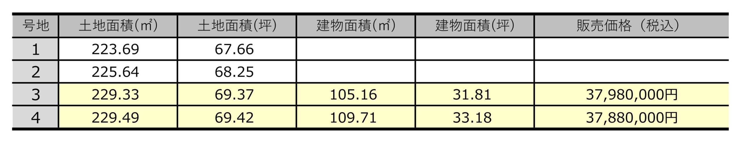 ■トレステージ城山小学校前Ⅵ概要 ●所在地/熊本県熊本市西区城山半田1丁目452-10他●交通/産交バス「城山小学校前」バス停徒歩約6分●地目/宅地 ●用途地域/無指定●建ぺい率/40%●容積率/80%●道路幅員/北側道路(公道)幅員約5.0m ●下水/本下水 ●雨水/側溝排水 ●電気・ガス・上下水道/九州電力、公営水道、オール電化(モデルハウスのみ) ●総区画数/4区画 ●販売戸数/新築一戸建:2戸 ●土地面積/229.33㎡~229.49㎡ ●建物面積/105.16㎡~109.71㎡●販売価格/3,788万円(税込)~3,798万円(税込)●完成/3、4号地:令和7年9月 ●入居時期/即入居可 ●取引態様/売主