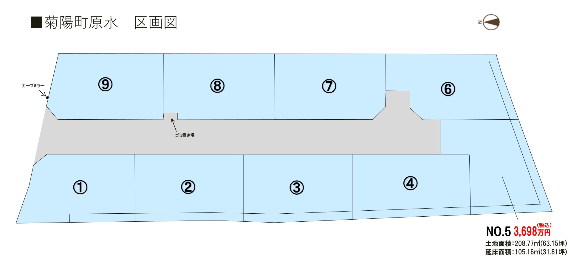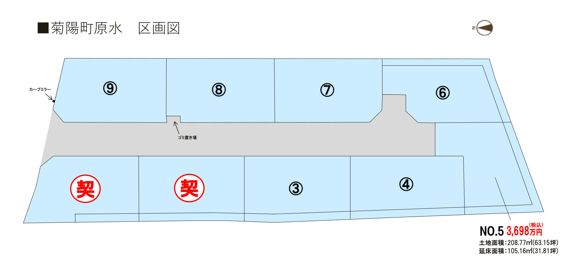 ■トレステージ菊陽町原水概要 ●所在地/熊本県菊陽町原水字村西386-18他●交通/産交バス「熊本セントラル病院」バス停徒歩約10分●地目/宅地 ●用途地域/無指定●建ぺい率/70%(2.3.4.5.6.7.8号地)、80%(1.9号地)●容積率/200%●道路幅員/北側道路(公道)幅員約6.0m 、団地内道路(公道)幅員6.0m●下水/本下水 ●雨水/側溝排水 ●電気・ガス・上下水道/九州電力、公営水道、オール電化 ●総区画数/9区画 ●販売戸数/新築一戸建:1戸 ●土地面積/208.77㎡ ●建物面積/105.16㎡●販売価格/3,698万円(税込)●建築確認番号/第1250553号 ●完成/令和7年11月予定 ●入居時期/要相談 ●取引態様/売主