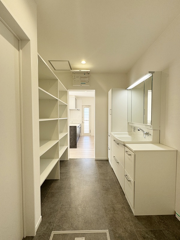 水回り動線がコンパクトで、家事効率が良い間取りです。同時に家事を進めやすく、はかどります♪