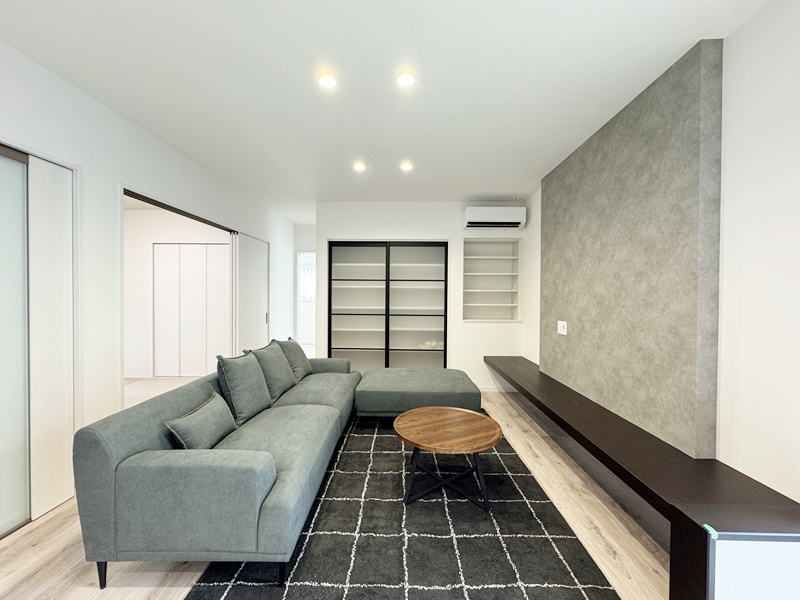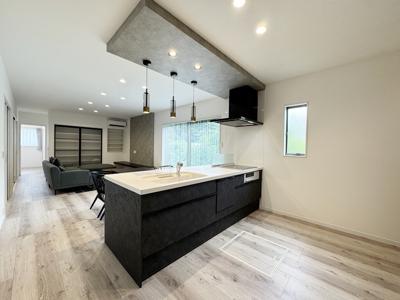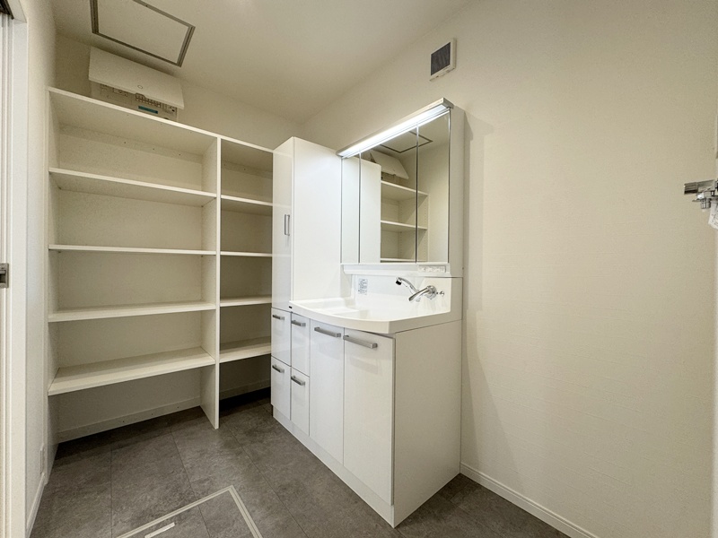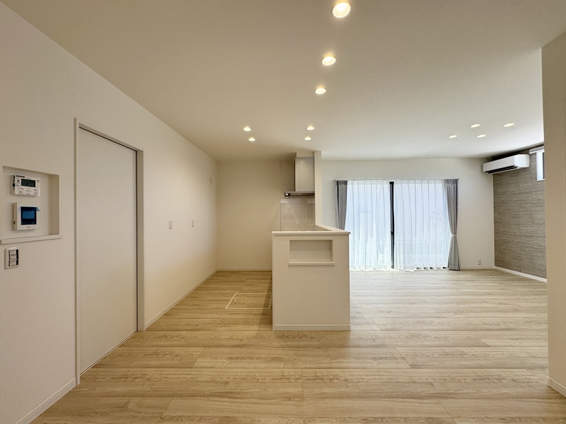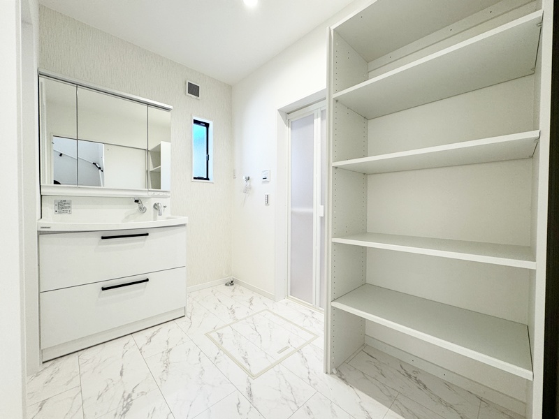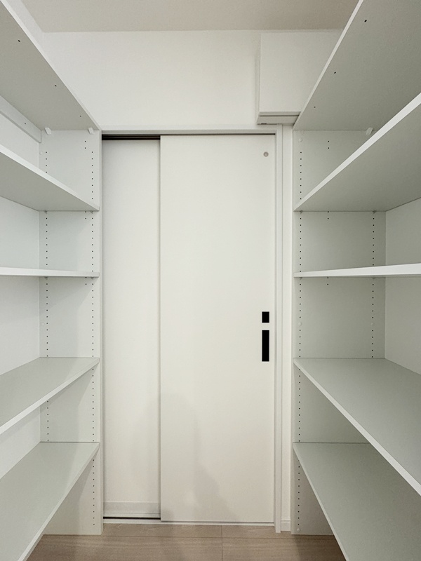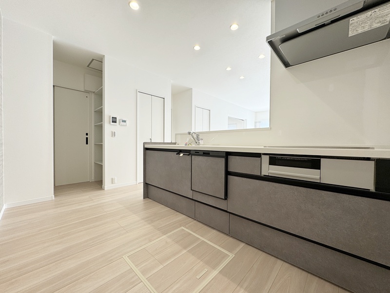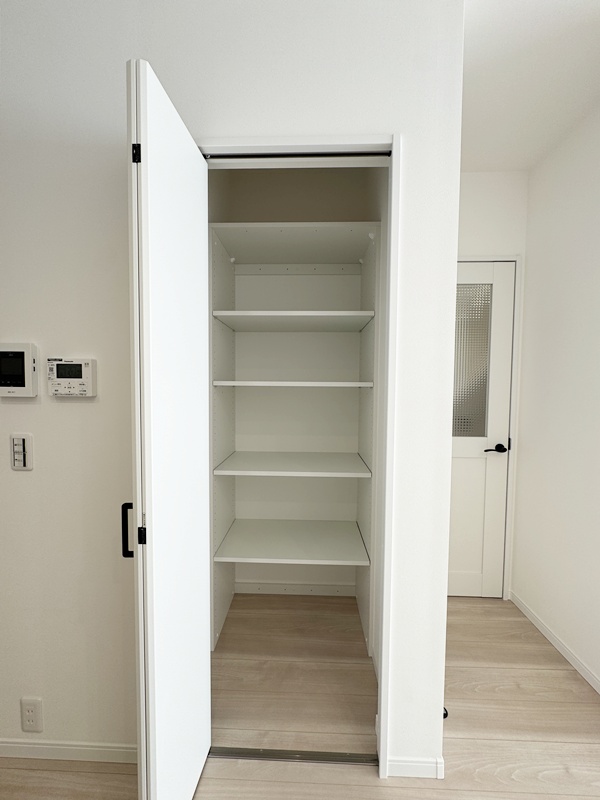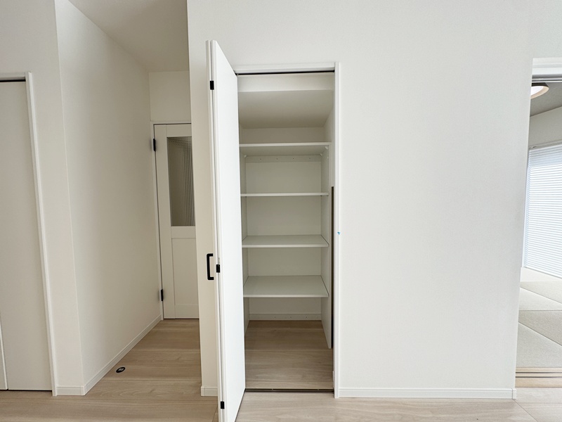 - リビングに収納を沢山設けているので、おもちゃや日用品などの片付けを簡単に行うことができ毎日を快適に過ごすことができます。キッチン横にもパントリーを設けているので調味料のスットクも可能です。