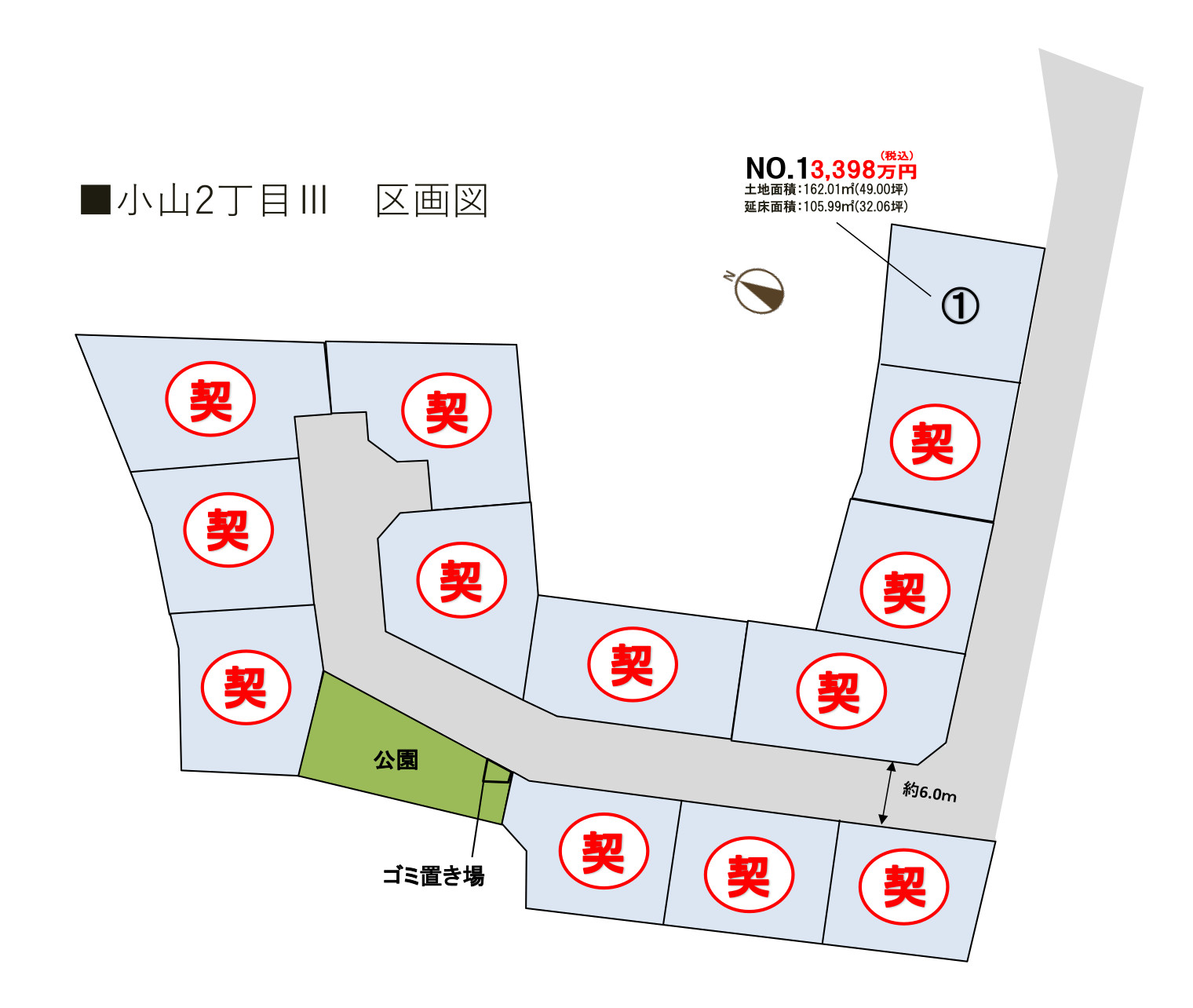 全区画図を基に描き起こしたもので、実際のものとは異なります。また、ガードレール等は表現しておりません。