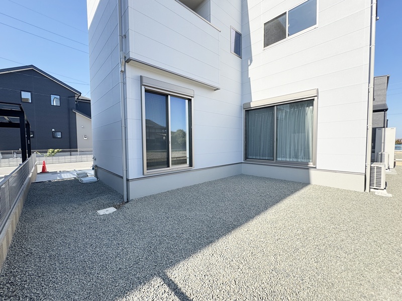 - リビングと和室の両方から見える砂利の庭は、手入れがしやすく、BBQやアウトドア気分も気軽に楽しめる庭です。火を使うシーンでも安心しやすい砂利だから、週末は家族や友人と外ごはんを楽しむ場として大活躍。