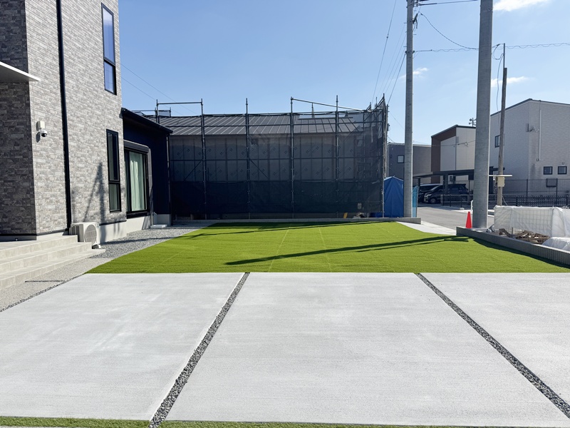 - 人口芝を敷いたお庭は、見た目も美しくお手入れもラク。お子さまの外遊びやちょっとしたくつろぎ時間にもぴったりで、季節問わず快適に使えます。