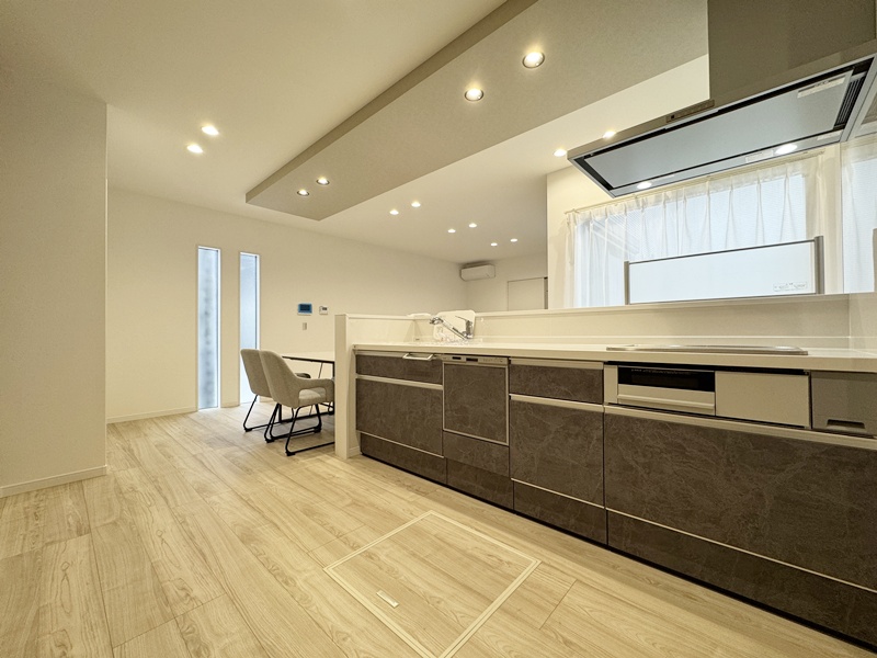 - 家の中を行き止まりなく回れる回遊動線を採用。リビングを中心に、キッチン・洗面脱衣室へスムーズにつながり、家事や身支度の移動が最短で完結します。