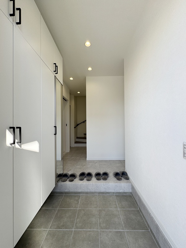 - 居室とリビングを玄関で分けているので、就寝時や勉強の時間も快適です。家族時間も一人一人の時間も大切にできる住まいです。