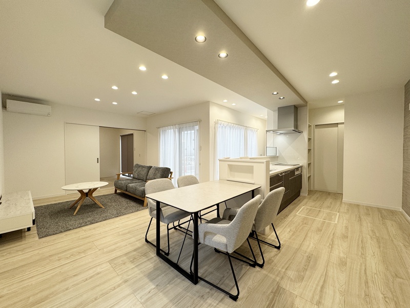 - 南向きで日当たり良好の20帖のLDKは、4.5帖の和室と隣接し、さらに広がりを感じられます。LDKは、家族が集まる優しい空間です。