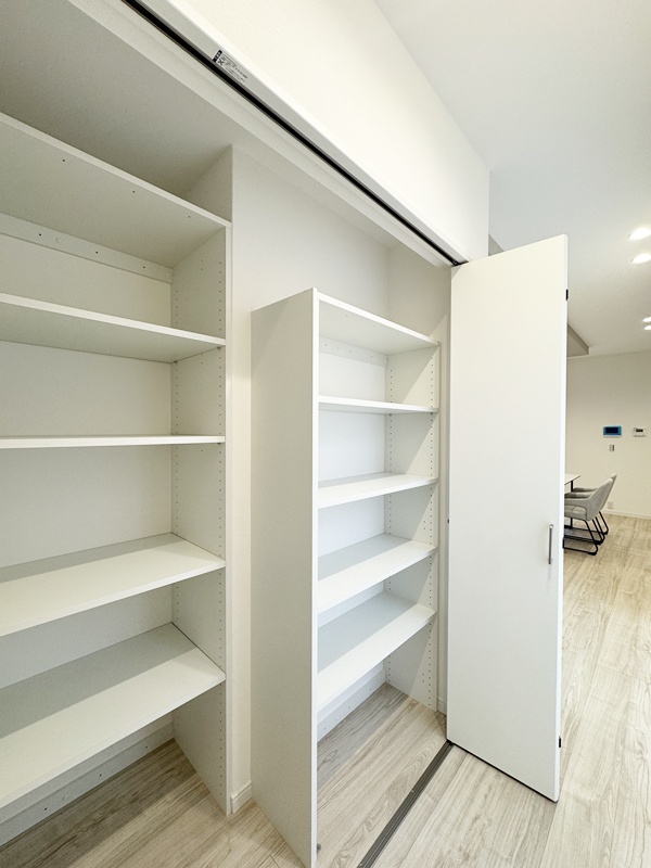 - 水回りそばにファミリークローゼットを完備し、干す→畳む→収納が最短ルートで完結!LDKと隣接しているのもポイントで、お出かけグッズも家族分スッキリ収納可能です。