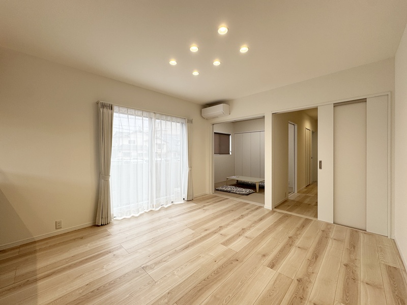 - 主寝室がリビングとつながっていることで、生活の中心がまとまり動線スッキリ。日常の移動がスムーズで、小さなお子さまがいるご家庭でも家族の気配を近くに感じながら安心して過ごせます。