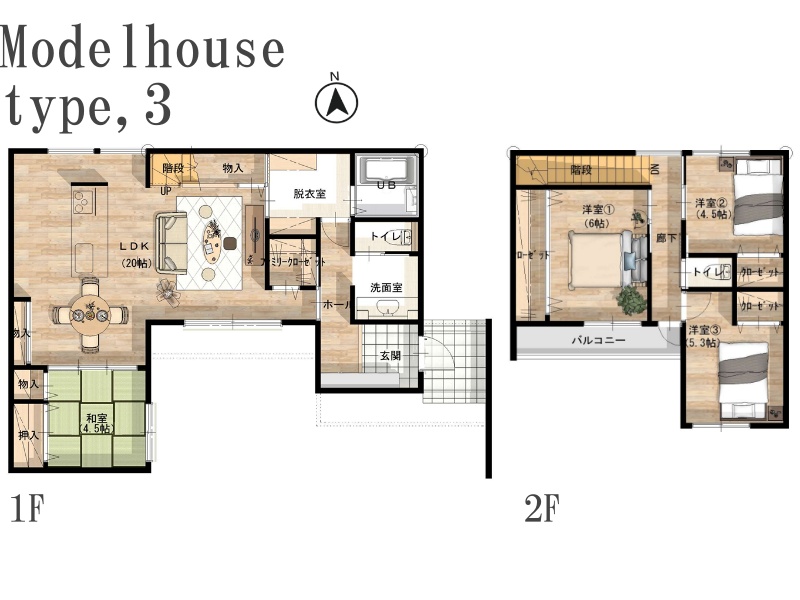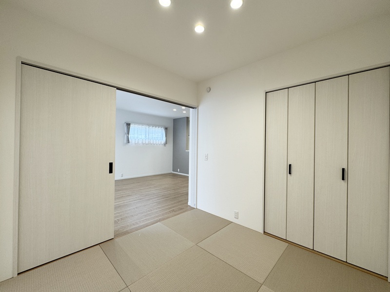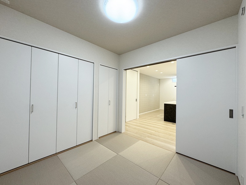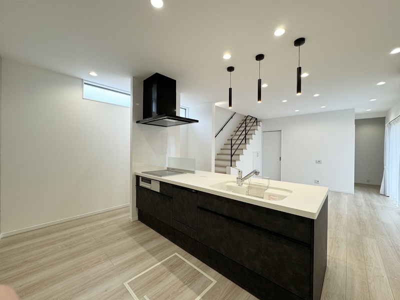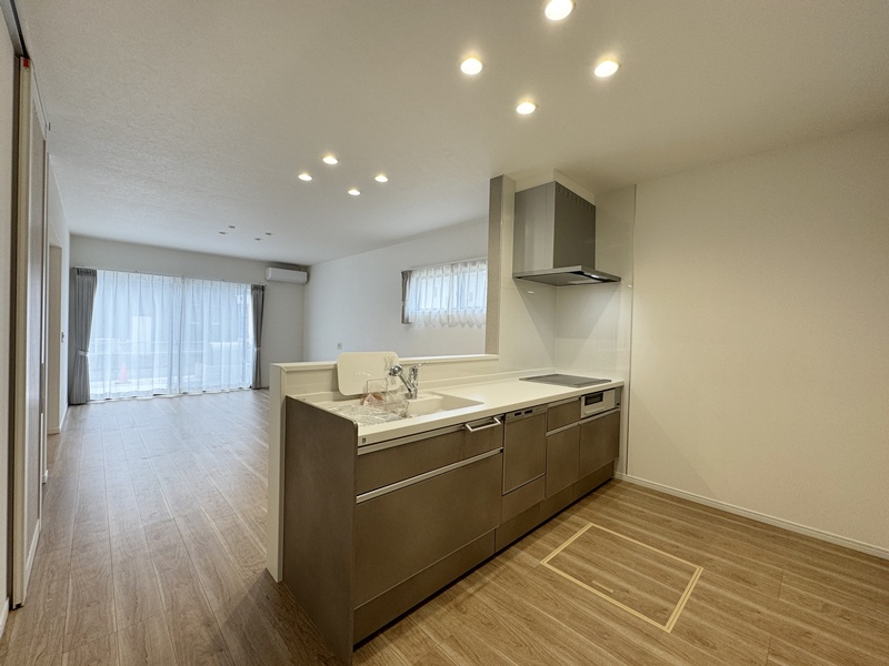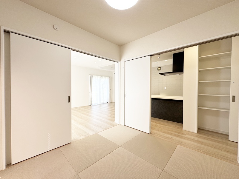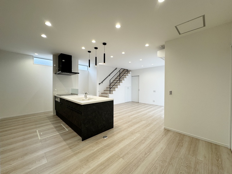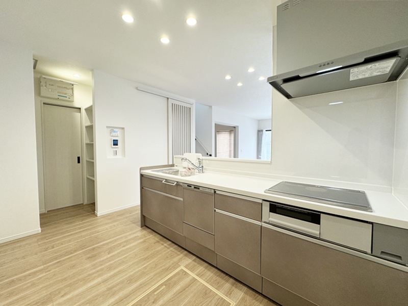 - 20帖の広々としたLDKは和室とつながっているので20帖以上の広さを感じることができます。キッチンは左右どちらからでも動くことができ、ダイニングと横並びにし家事がしやすくなっています。