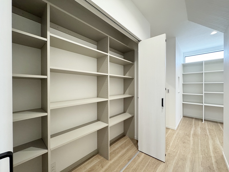 - シューズクロークや外部収納、パントリーなど随所に収納スペースをたっぷり確保しました。