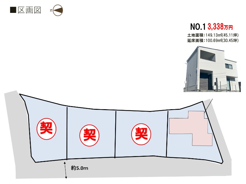 全区画図を基に描き起こしたもので、実際のものとは異なります。また、ガードレール等は表現しておりません。