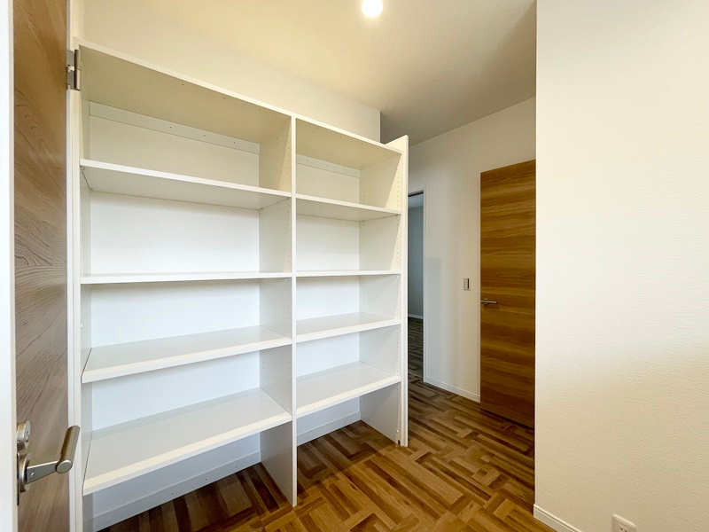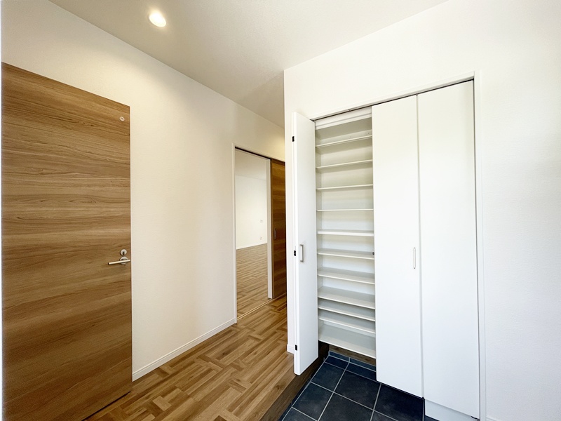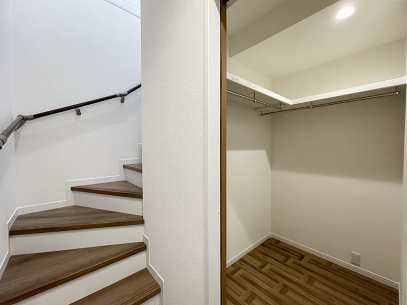 1階の廊下にはウォークインクローゼットを設けました。階段すぐ横にあるので朝の身支度をスムーズに行うことができ、帰宅後リビングに服についたウイルスを持ち込まず感染症対策になります。