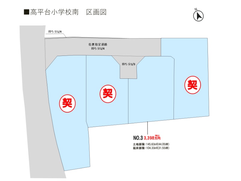■トレステージ高平台小学校南概要 ●所在地/熊本県熊本市北区打越町275-1他●交通/電鉄バス「打越」バス停徒歩約1~2分●地目/宅地 ●用途地域/第一種低層住居専用地域●建ぺい率/40%●容積率/80%●道路幅員/西側道路(公道)幅員約5.6m、団地内道路(公道)幅員約4.0m ●下水/本下水 ●雨水/側溝排水 ●電気・ガス・上下水道/九州電力、公営水道、オール電化 ●総区画数/4区画 ●販売戸数/新築一戸建:1戸 ●土地面積/145.63㎡ ●建物面積/104.33㎡●販売価格/3,398万円(税込) ●完成/3号地:令和7年4月 ●入居時期/即入居可 ●取引態様/売主