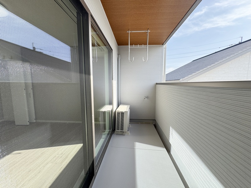 - 洗面脱衣室にファミリークローゼットを隣接させ、洗濯動線を効率化。室内干しからそのまま収納できる設計で、家事時間を短縮し、暮らしにゆとりを生み出します。
