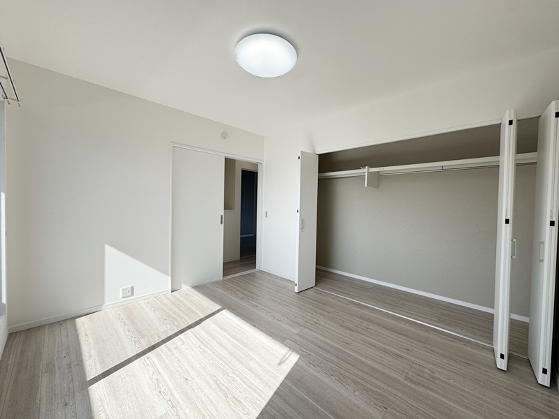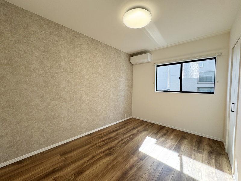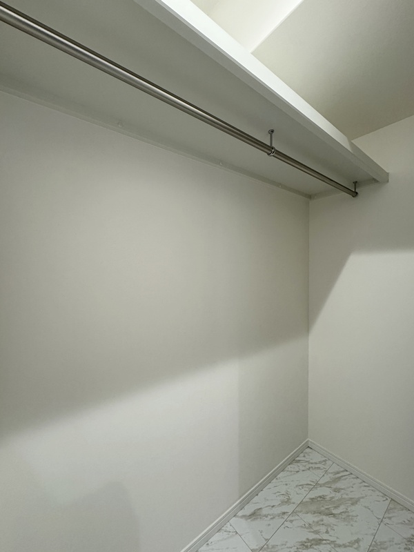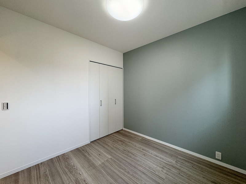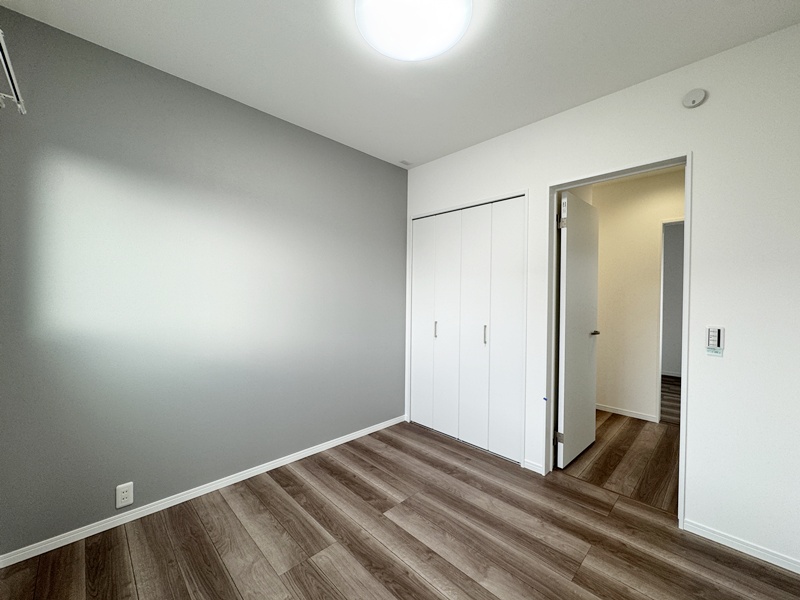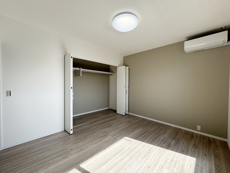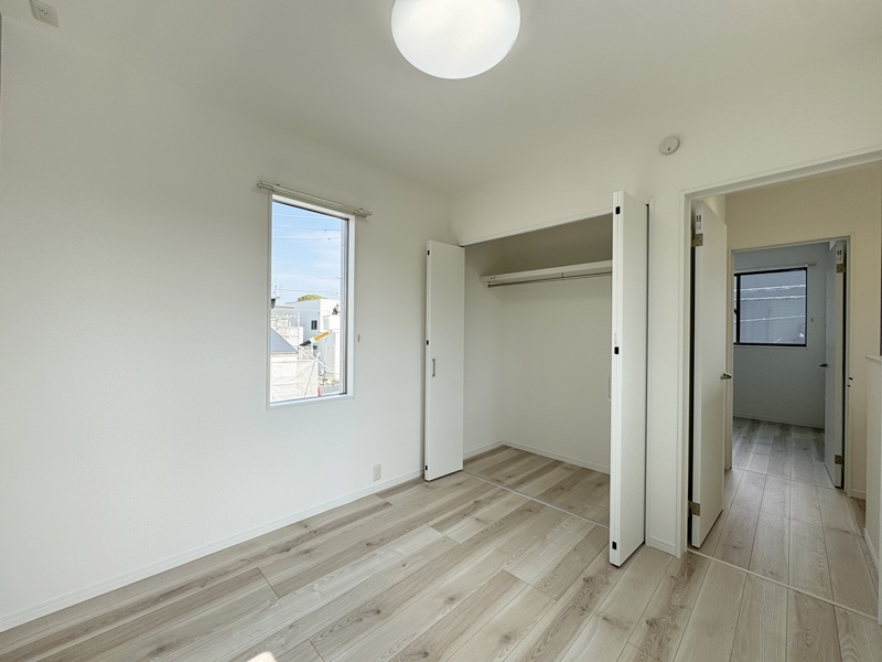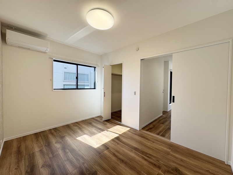 - 主寝室ひデスクカウンターとウォークインクローゼットを配置。ワークスペースや書斎として使えるデスクに加え、背面には収納棚を設け、書類や小物もすっきり整理。身支度から作業まで、主寝室で快適に完結できる設計です。