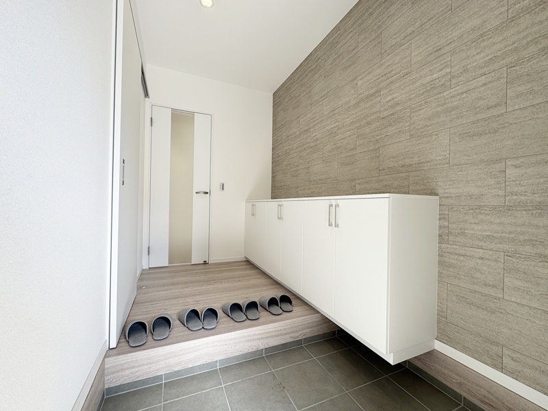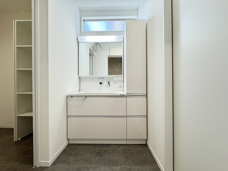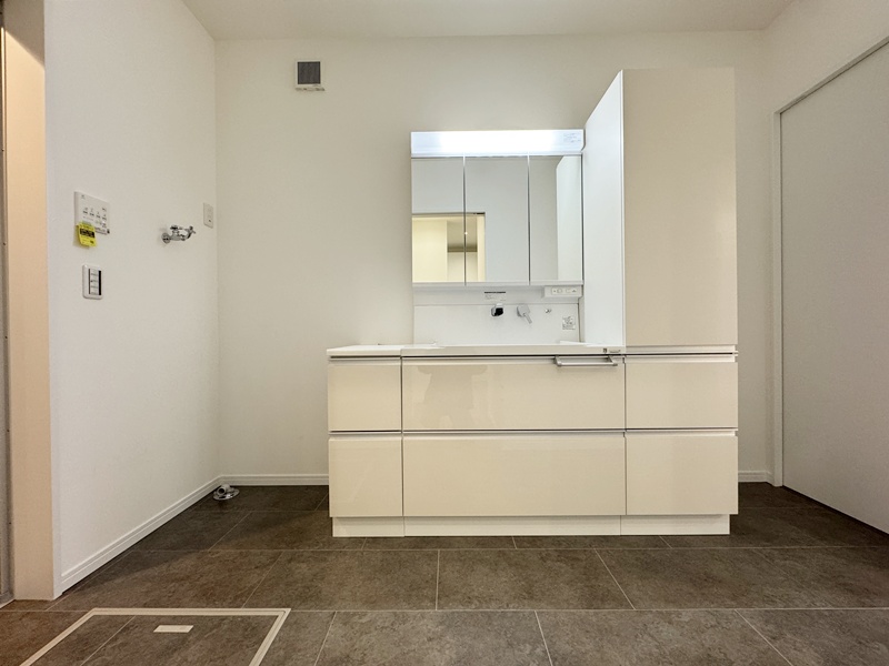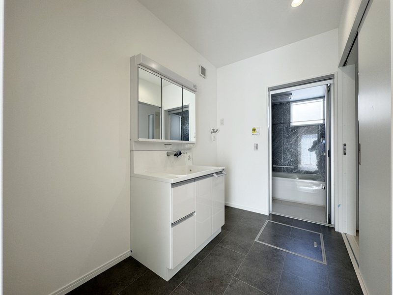 - 玄関からもリビングからも洗面脱衣室へアクセスできる2WAY動線を採用。帰宅後すぐの手洗いや身支度はもちろん、家族の生活リズムに合わせてスムーズに使える、毎日の快適さを考えた間取りです。
