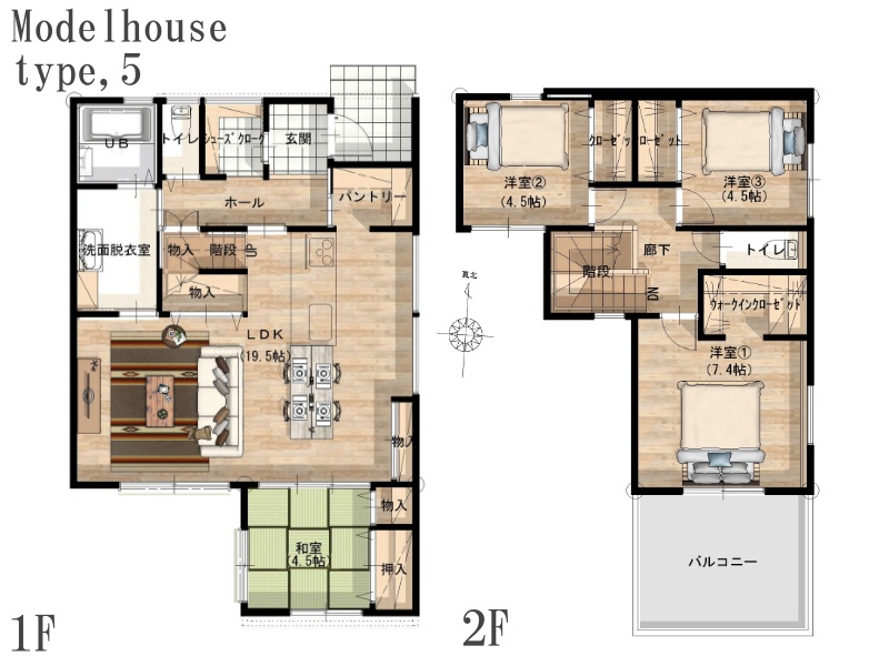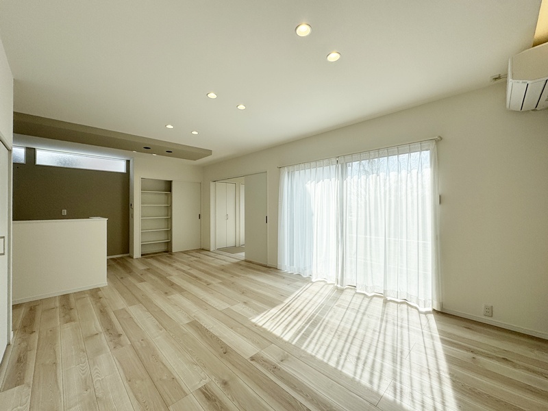 - 家族でゆっくり過ごすLDKは19.3帖あり、南向き。2階には3部屋あるので、それぞれの時間も気兼ねなく過ごせます。また随所に収納を設けた1階は、モノの移動を最小限に抑えられ、サッと片付けられて便利です!