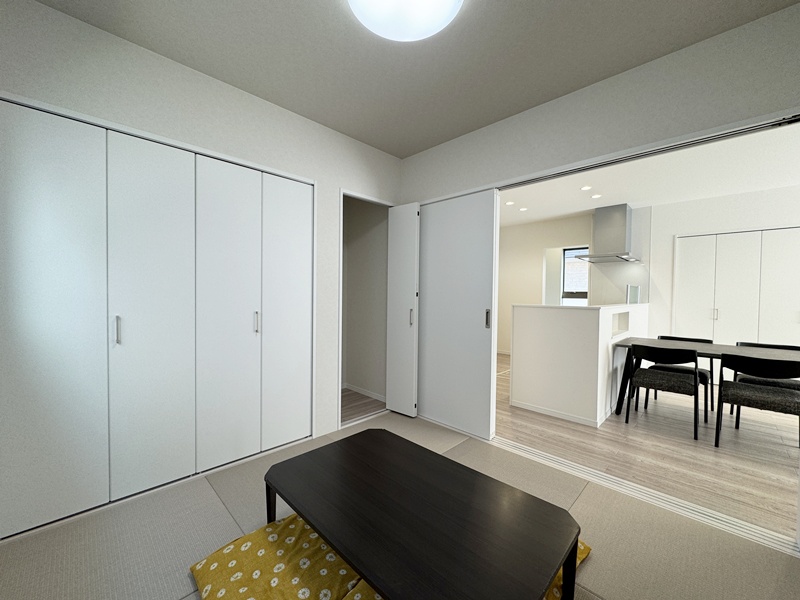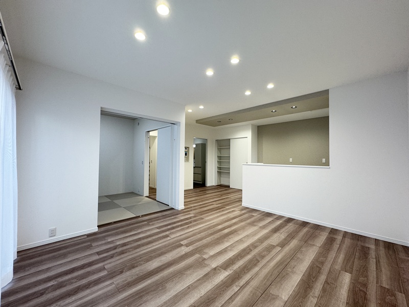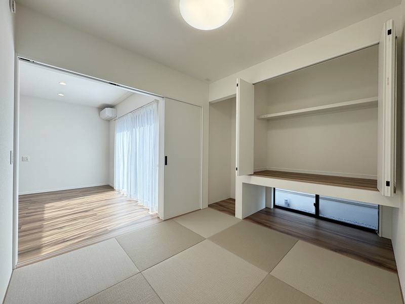 - キッチン横の4.5帖の和室は、お子様が小さなうちは遊ぶスペースやお昼寝の場所として使えて便利!成長に合わせて、学校の準備や勉強をするスペースにしたりとフレキシブルにご使用いただけます。