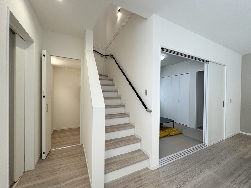 - リビングを経由して2階に上がる動線で、家族の動きが把握しやすい設計。お子さまの成長を見守りながら、安心して暮らせる住まいです。