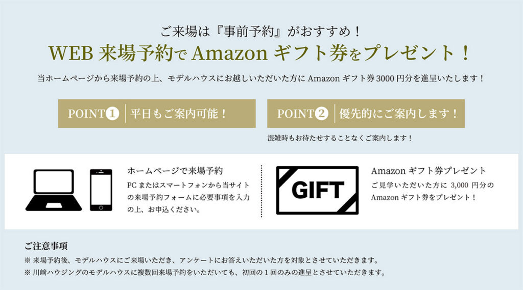 当ホームページから来場予約の上、各物件モデルハウスにお越しいただいた方に