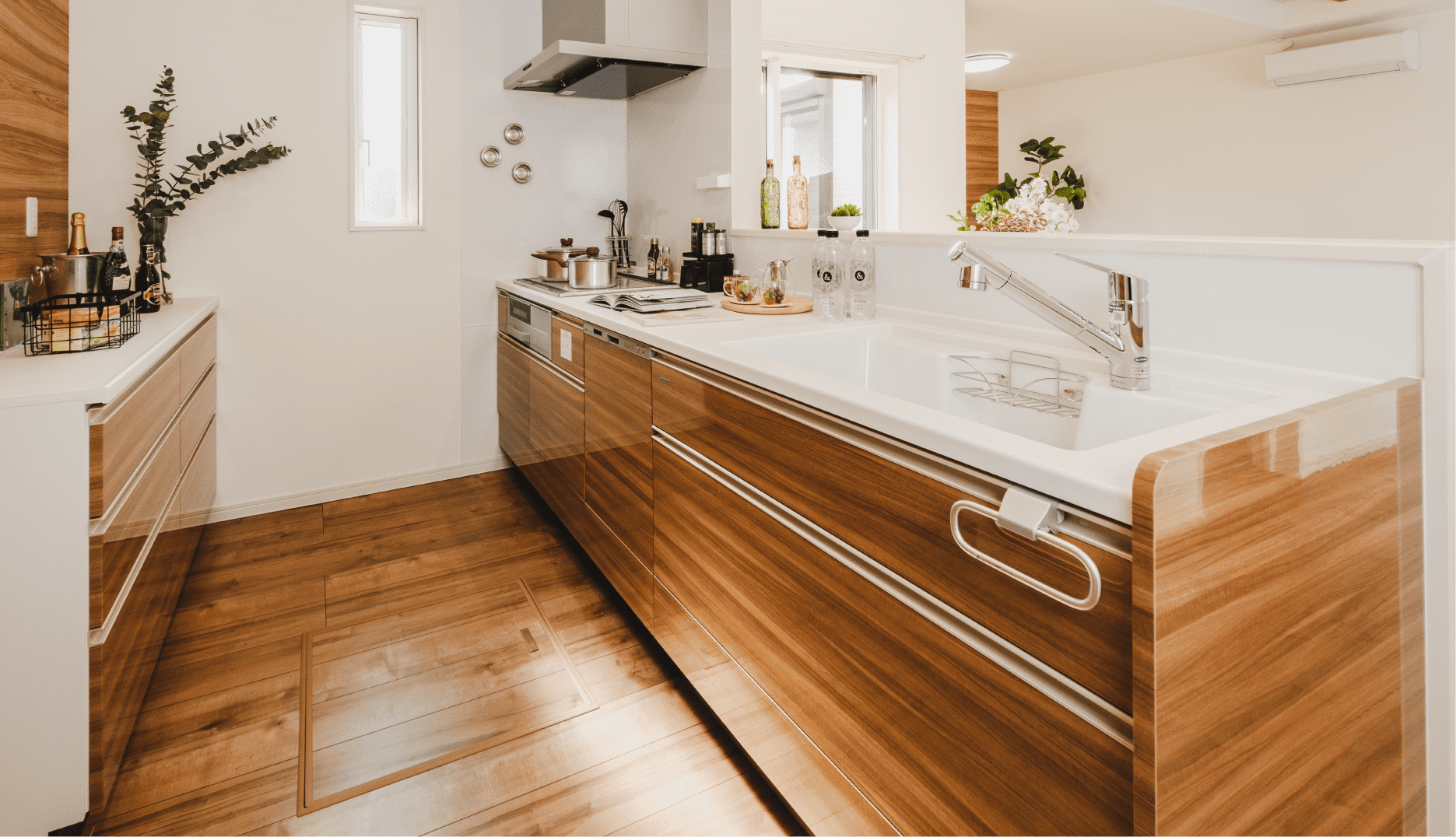 簡単お手入れでお掃除ラクラク。ヒヤッとせずにほっとする、翌朝にはカラリと乾いているこだわりの床です。