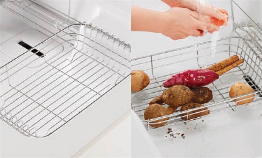 例えば、根菜類もシンクの底に置かずに洗えます。
