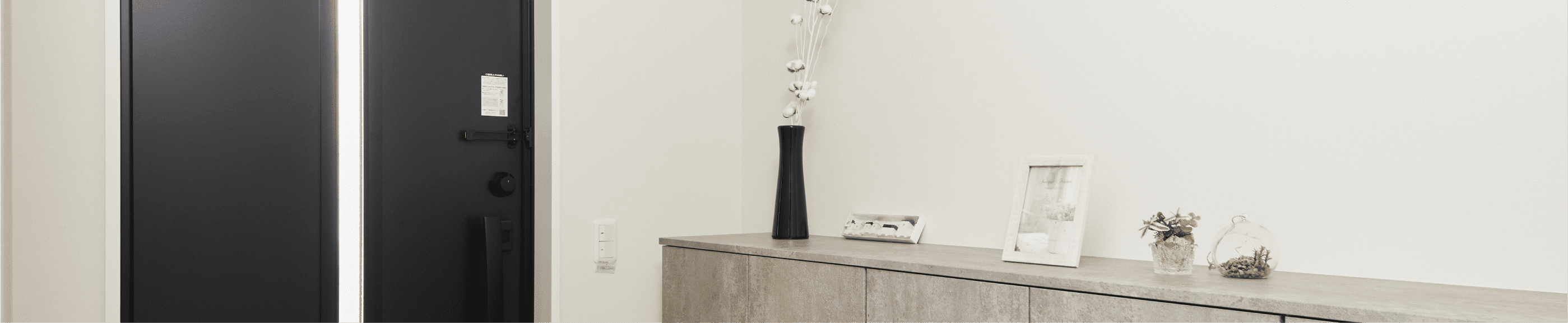 - スマートフォンが玄関キーに早変わり。スマートフォンをバッグやポケットに入れておけば、ドアのボタンを押すだけで施解錠できます。さらに、カードキー/タグキー、リモコン、手動キーから、家族一人ひとりが選べるのも魅力です。