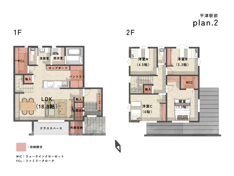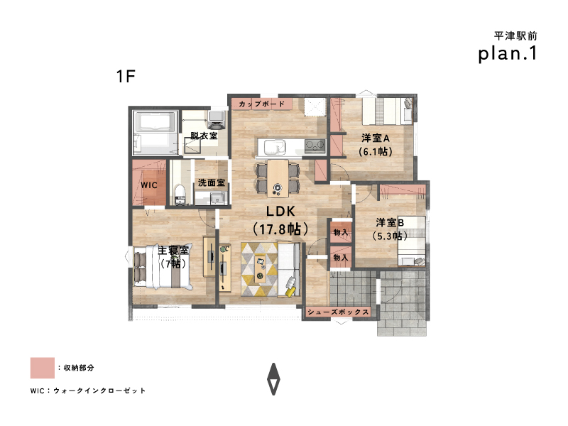 17.8帖のLDKを真ん中に配置し、各居室へアクセスしやすいレイアウト。