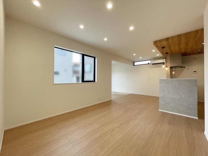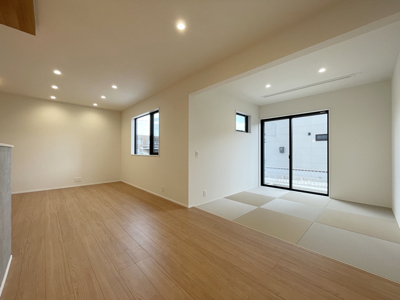 - 19.8帖のLDKに隣接する4.5帖和室。遊び場やお昼寝スペースにもぴったり。目が届きやすく、安心して多用途に使えます。