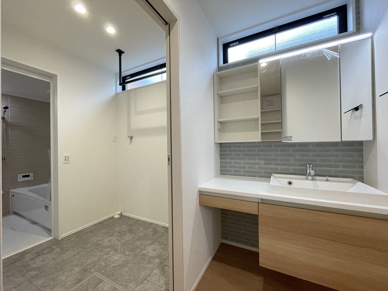 - 脱衣室・洗面・浴室が一直線につながり、毎日の家事もスムーズに。洗濯動線が快適です。