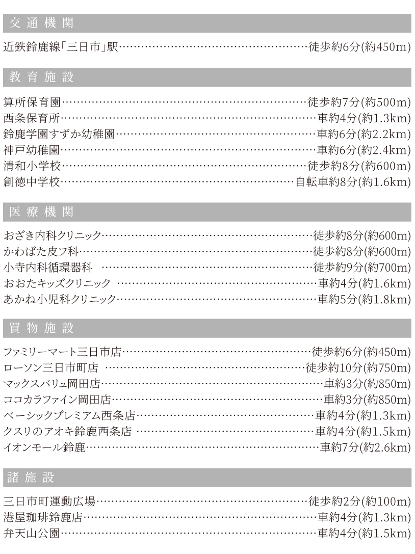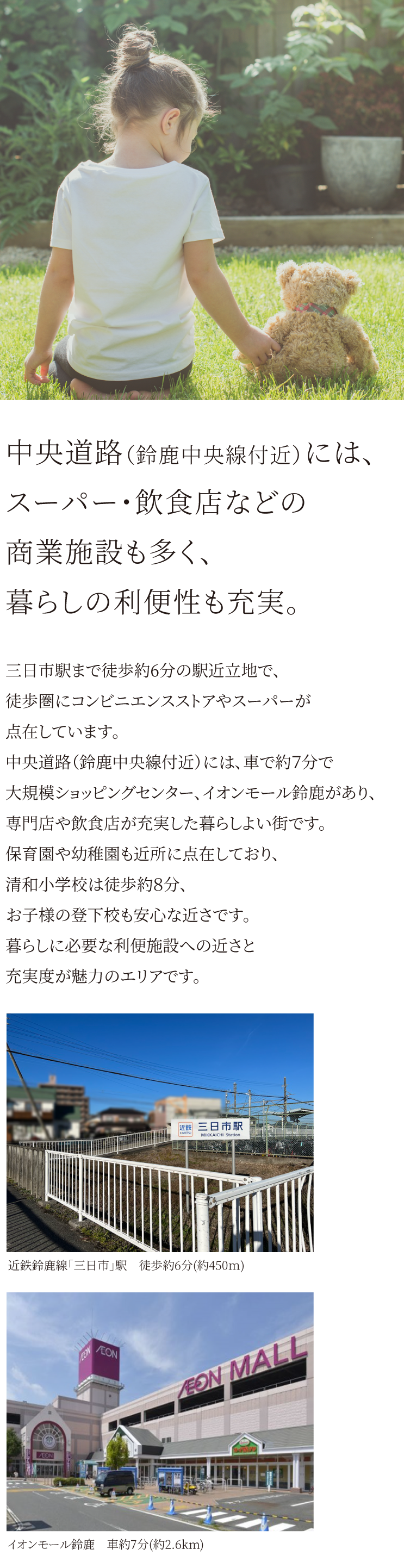 保育園・小学校まで徒歩約1 0 分圏内で、生活利便施設も充実。