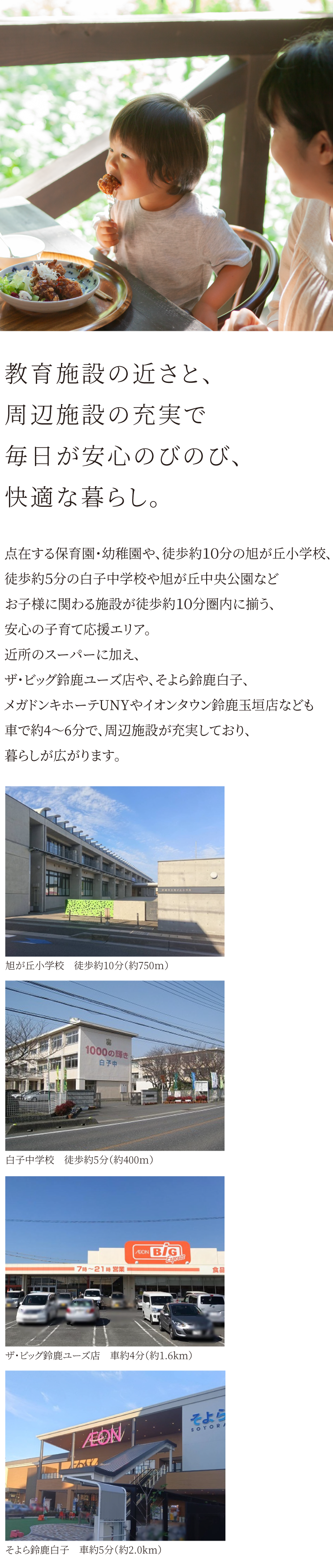 保育園・幼稚園、小・中学校、公園が徒歩約1 0 分圏内の子育て応援エリア。