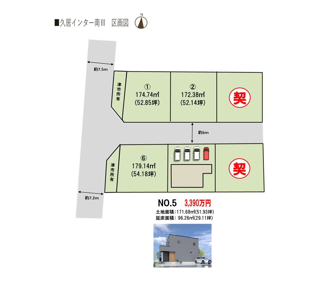 ■トレステージ久居インター南Ⅲ概要 ●所在地/三重県津市戸木町字東出7010-5他 ●交通/近鉄名古屋線「久居」駅自転車約13分●地目/宅地 ●用途地域/第1種住居地域●建ぺい率/60%●容積率/200%●道路幅員/北側公道幅員(約6.0m) ●下水/本下水 ●雨水/側溝排水 ●電気・上水道/中部電力(オール電化)、公営水道 ●総区画数/6区画 ●販売戸数/一戸建:1戸 ●土地面積/171.18㎡ ~171.68㎡●建物面積/ 96.26㎡●販売価格/3,390万円 ●入居時期/即入居可 ●取引態様/売主