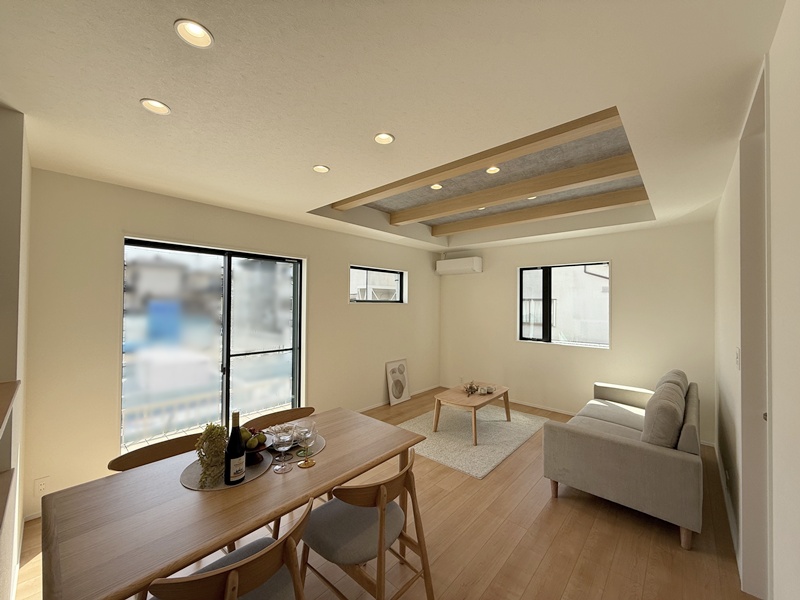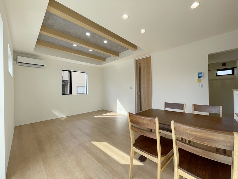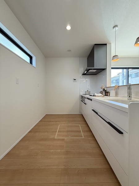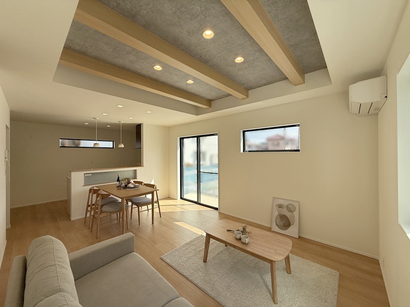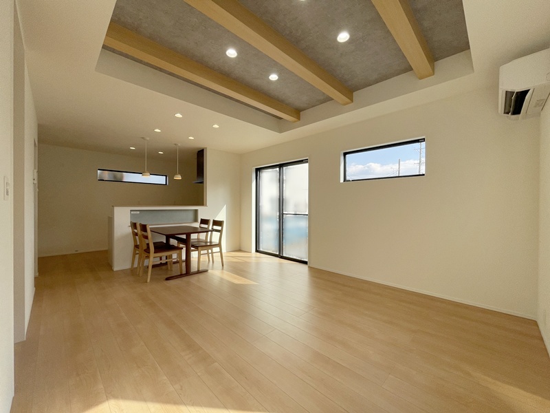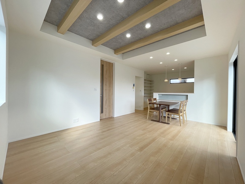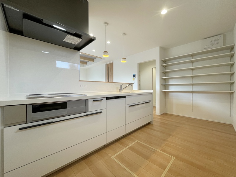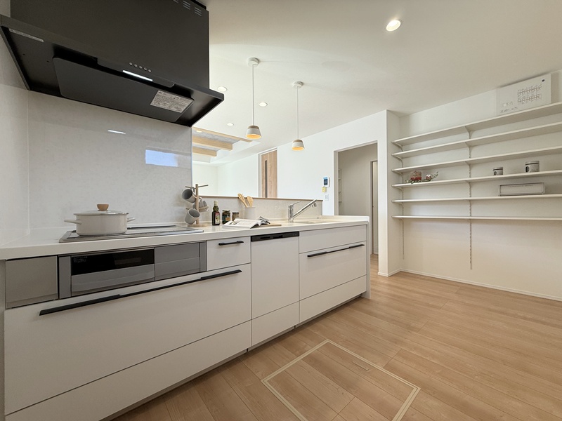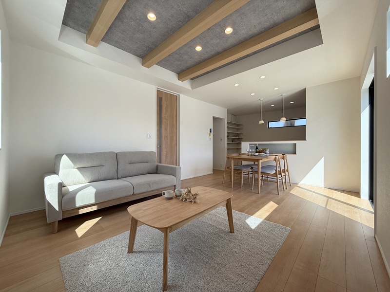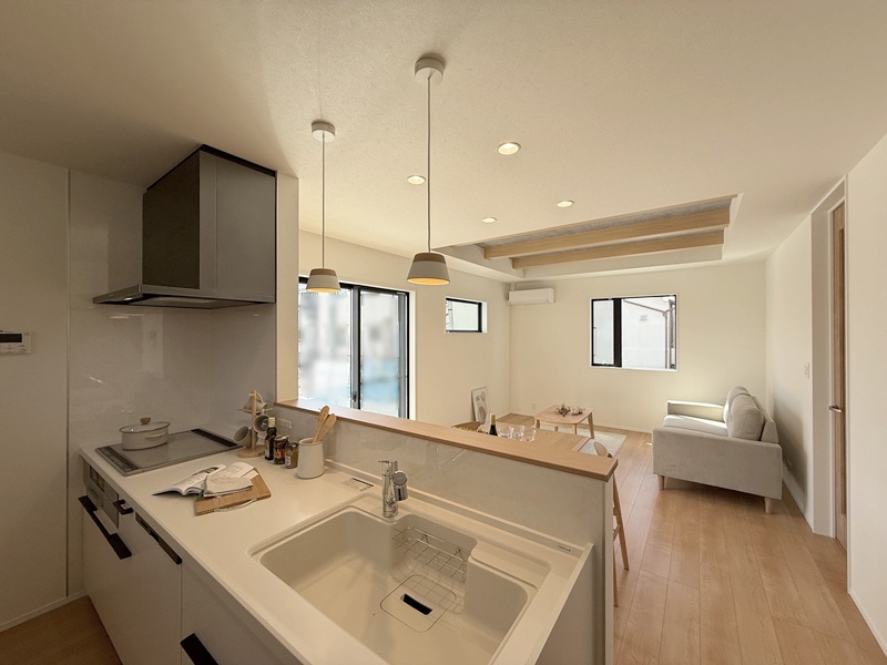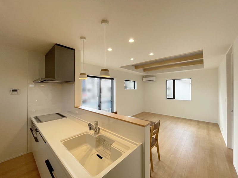LDKは家族が自然と集まるワンフロア空間。キッチンからリビング・ダイニング全体を見渡せるため、お子さまを見守りながら安心して家事が行えます。