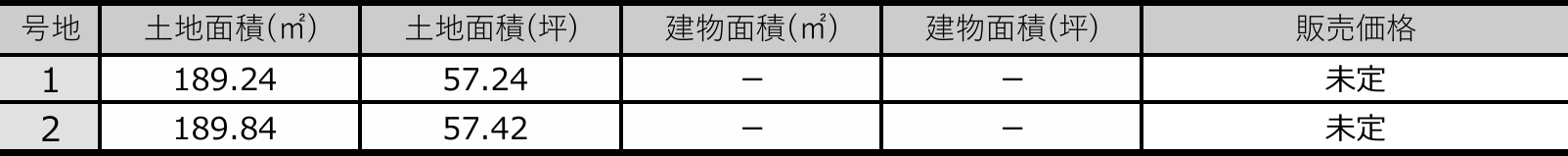 ■トレステージ大羽根園松ヶ枝町概要 ●所在地/三重県三重郡菰野町大羽根園松ヶ枝町17番3他●交通/近鉄湯の山線「大羽根園」駅・・・約650m(徒歩約9分)●地目/宅地 ●用途地域/第1種中高層住居地域●建ぺい率/60%●容積率/200%●道路幅員/北側道路公道幅員(約11.0m) ●下水/公共下水●雨水/側溝排水 ●電気・上水道/中部電力(オール電化)、公営水道 ●総区画数/2区画 ●販売戸数/一戸建:未定 ●土地面積/189.24㎡~189.84㎡●建物面積/未定●販売価格/未定 ●入居時期/相談 ●取引態様/売主