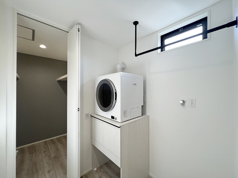 洗面脱衣室とランドリールームを分けることで、入浴・洗濯・身支度が同時に行えて効率的。