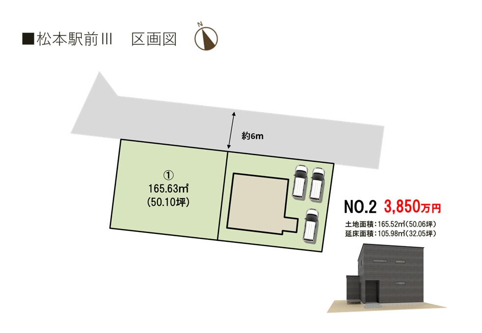 ■トレステージ松本駅前Ⅲ概要 ●所在地/三重県四日市市松本3丁目309番10他●交通/近鉄湯の山線「伊勢松本」駅徒歩約4分●地目/宅地 ●用途地域/第1種住居地域●建ぺい率/60%●容積率/200%●道路幅員/北東側公道幅員(約6.0m) ●下水/個別浄化槽 ●雨水/側溝排水 ●電気・上水道/中部電力、公営水道 ●総区画数/2区画 ●販売戸数/一戸建:一戸 ●土地面積/165.52㎡~165.63㎡ ●建物面積/105.98㎡ ●販売価格/3,850万円 ●入居時期/相談 ●取引態様/売主